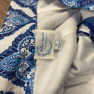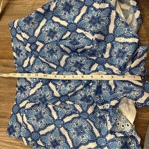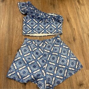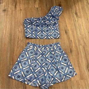 Mi Ami Matching Set Blouse Shorts Women’s S Blue White One Shoulder Cropped Boho
