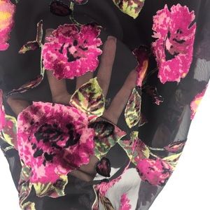 Mi Ami Black Mini Sundress with large pink velveteen flowers. Hangs loose. Lined. NWT