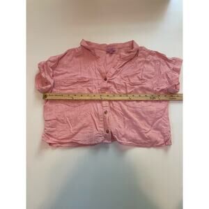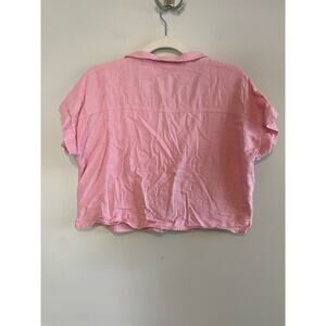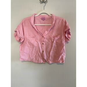 Mi Ami Size M Pink Linen Blend Crop Top Button Up Short Sleeves