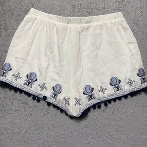 Mi Ami White Floral Embroidered pom pom shorts with pockets Sz M