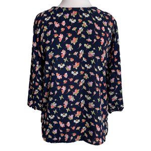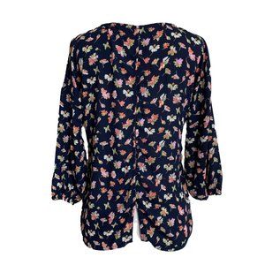 Mi Ami Womens Blouse Shirt Size XS Navy Blue Floral 3/4 Sleeves Button Back Top
