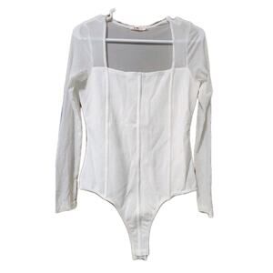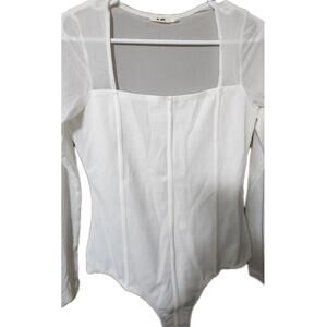 Mi Ami Womens White Long Sleeve Sheer Bodysuit Size Medium