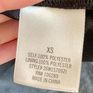 Low V-neck dress. Excellent condition. No rips, stains, or tears. No closure device in the v-neck but it stays tight and conceals well from the overlapping fabric. The top half of the dress in the back is sheer and see-through. The front is double-lined and not see-through. The bottom-half of the dress is also double-lined and not see-through. Small decorative bow-tie in the waist on the front. Waist is elastic. Button closure in the top of the back at the neckline. I am 5'7" and 110 lbs.