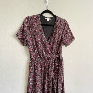 Mi Ami womans Floral faux Wrap maxi Dress size M romantic side slit feminine