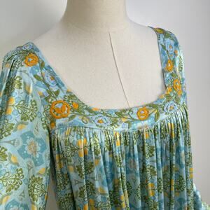 Mi Golondrina Eli Verdes Azuelejos Dress Floral Printed Blue Boho