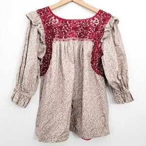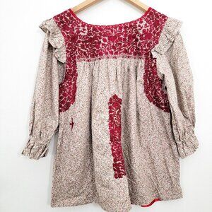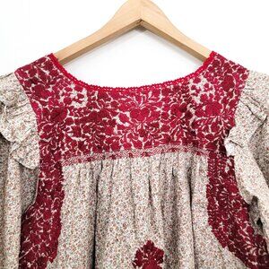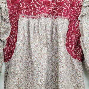 Mi Golondrina Fernanda Ruffle Blouse in Red Tan Medium