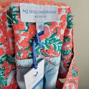 Mi Golondrina Flores Blouse in Dia Coral y Verde size XS NWT