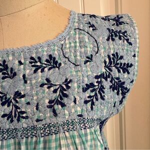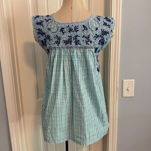 Mi Golondrina Small Check Embroidered Tunic Top ~ Preppy Classic