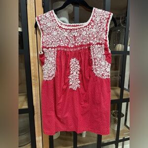 Mi Golondrina embroidered blouse tunic flores top sleeveless polka dots print