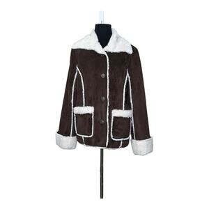MiFresia Brown Suede White Sheerling Trim Button Jacket size M