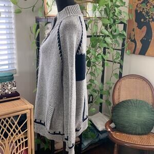 M.i.H Jeans London Gray & Navy Wool Knit Button Up Cardigan Sweater - M