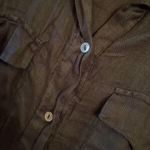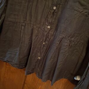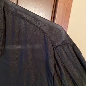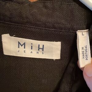 EUC. MiH Jeans Ramie Black See Through Peplin Shirt - Size Large. Approximate Measurements: Length 26”; sleeves 26”; armpit to armpit 21”. Made in Portugal. (I tried to show the see-through by using a white hanger, see photo's).
