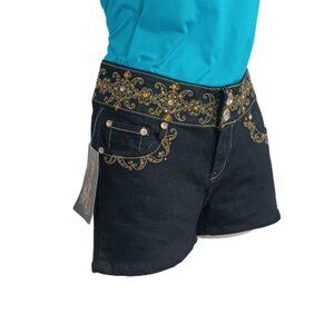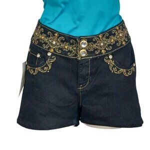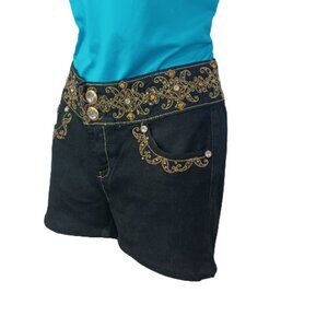 Mi-Jeans Women's Shorts Black Embellished w/Thread & Shiny Imitation Stones