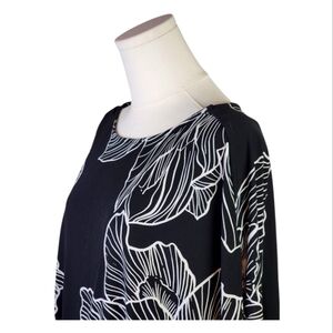 Elevate your wardrobe with this stunning MiXT by Heidi Weisel black floral shift dress in size 18W, designed for effortless elegance and everyday comfort. This stylish dress features a striking oversized white floral print set against a classic black background, creating a bold and modern contrast that's both eye-catching and versatile. The relaxed blouson-style bodice pairs with a gently draped skirt for a flattering silhouette that moves gracefully with you.