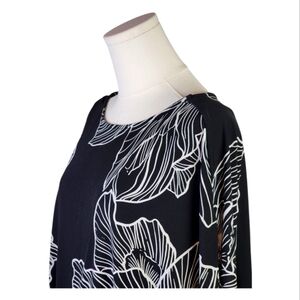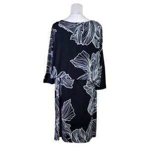 Elevate your wardrobe with this stunning MiXT by Heidi Weisel black floral shift dress in size 18W, designed for effortless elegance and everyday comfort. This stylish dress features a striking oversized white floral print set against a classic black background, creating a bold and modern contrast that's both eye-catching and versatile. The relaxed blouson-style bodice pairs with a gently draped skirt for a flattering silhouette that moves gracefully with you.
