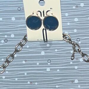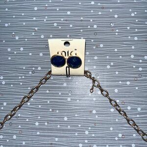 Mia 22โ€ Pendant Necklace Tri Colored Gems & Earrings Gold Fringe
