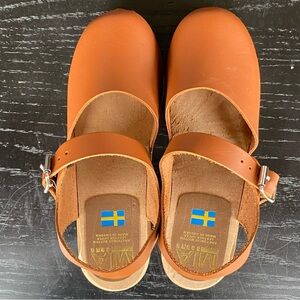 Mia Abba wooden leather clogs. In very good preowned condition. Size 39