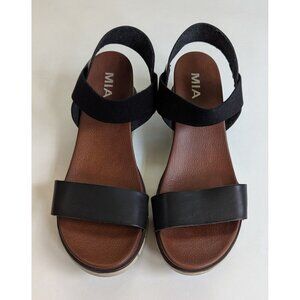 Mia Adley Black Leather Wedge Sandal Women's Size 9
