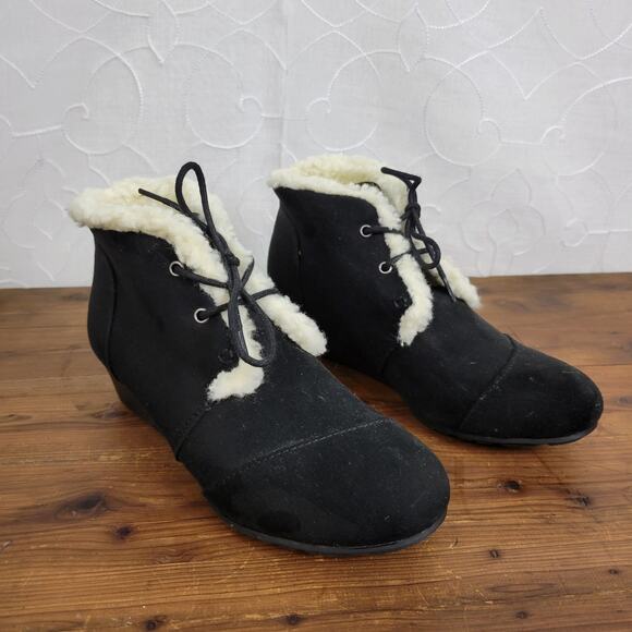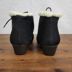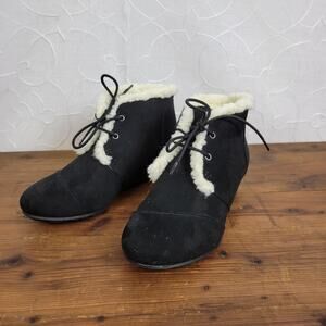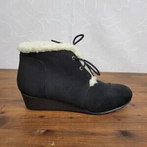 Mia Amore Sarah Womens Ankle Boots 7 Black Lace Up Suede Wedge Almond Toe NEW
