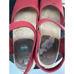 Mia Anja Swedish Leather Peep Toe Clog Sandals Red Sz. 37 (6.5)