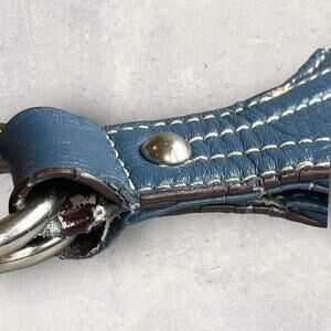 This Mia Battina bag has a lot going for it. The blue leather is unique and the texture is so nice. The stitching is still amazing, though it is vintage. The interior is clean and the zippers are still in great shape.