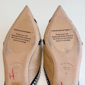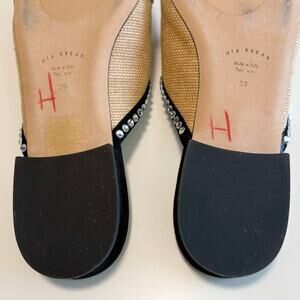 Mia Becar Ines Flat Mule EU 39 Italian Leather Raffia Crystals Slip On Feminine