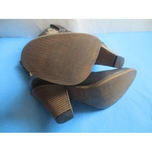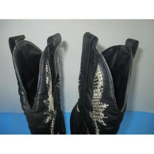 MIA Girl LAURENE Black Taupe and Cream Lizard Motif Pull-On Cowboy Boots! Western Style with Scalloped Edge. 6-1/2" shank. 3-3/4" stacked heels. Side top tabs. Man Made Materials. Size 8.5. All measurements are approximate. 0124