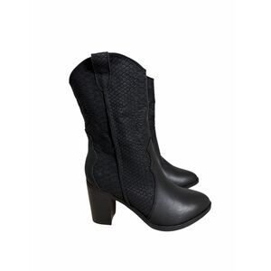 Mia Cindy Embossed Western Cowboy Boot in Black Python Size 7 Block Heel