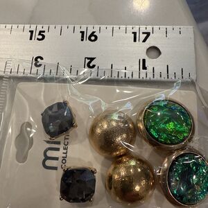 The Mia Collection by Kim Min Sun is a set of 3 pairs of fashion earrings with a stylish stud design. These multicolored earrings are perfect for adding a touch of fashion and costume flair to any outfit. Made in China, these earrings are a trendy accessory for those looking to elevate their jewelry collection with unique and eye-catching pieces.