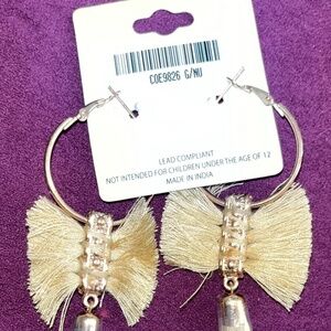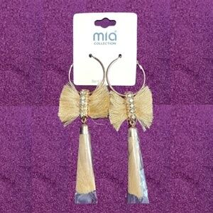 Mia Collection Earrings Tan Tassels Gold Tone Hoops Rhinestone NWT