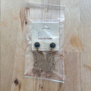 Mia Collection Gold Navy Blue Chain Tassel Dangle Earrings Post Back