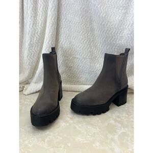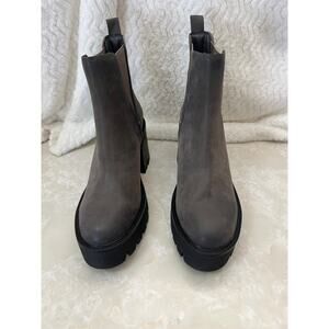 Mia Grey Pull On Chunky Lug Sole Platform Heeled Chelsea Boots Womens 10 US New