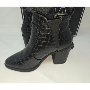 Mia Hart Black Gator Ankle Boots 6M-Block Heel Side Panels New in Box