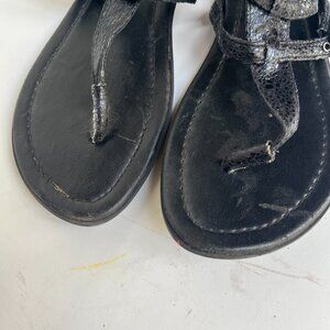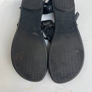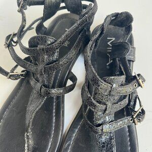 Mia Hyram Black Snakeskin Gladiator Triple Closure Thong Flat Sandals, Size 8.5