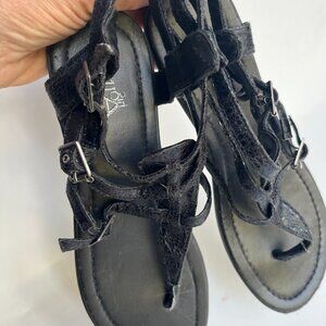 Mia Hyram Black Snakeskin Gladiator Style Triple Closure Thong Flat Sandals, Size 8.5, Never worn - sat in my closet for several years.