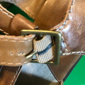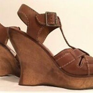 Mia Joplyn Brown Leather/Wood Wedge Sandals, Size 8, Excellent Condition