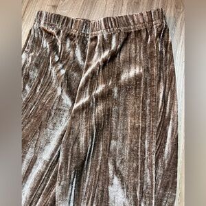 Luxurious velvet pants in a rich brown color. Perfect for a stylish look.