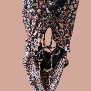 Mia Joy Girls size 12 Floral Print One Piece Ruffle Swimsuit Swim Tie Back