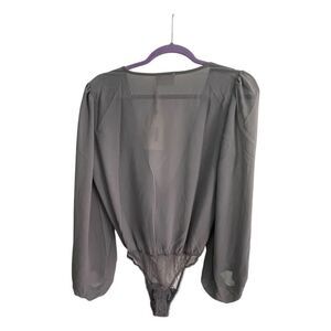 Mia Joy Joyfolie Glennon Surplus Bodysuit Slate Gray Sheer Bubble Long Sleeve XS