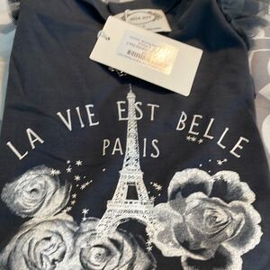 Mia Joy for Joyfolie Peyton La Vie Est Belle Paris Midi Dress in Charcoal Gray Knit and Tulle. Add a touch of whimsy to her wardrobe with our charming t-shirt midi dress. Playful ruffle sleeves gives the dress a fun silhouette. Perfect for any special occasion, this dress combines elegance and charm in one stunning piece.