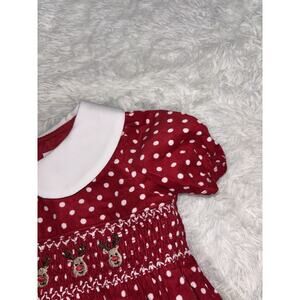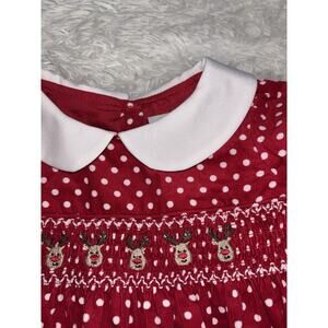 Beautiful Mia Juliana girls Sz. 2T red fine corduroy reindeer smock front design short sleeved holiday dress. Classic, traditional, perfect for any holiday event. Minimal signs of very gentle wear. Looks worn a handful of times if that. Beautiful dress!