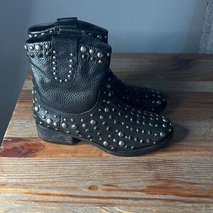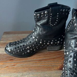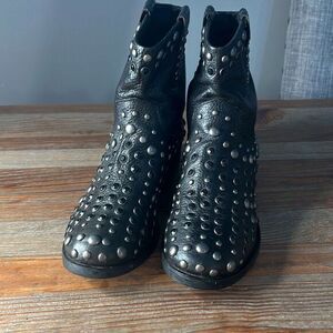 MLE MIA Limited Edition: studded leather ankle boots. Bling cowgirl , easy pull on booties.