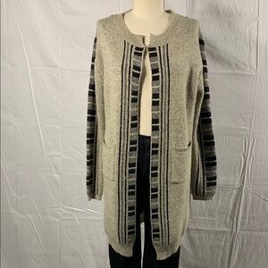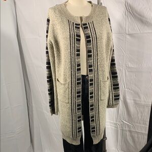 Stay cozy and stylish with this beige and black women's sweater. Perfect for any occasion, this sweater offers both comfort and elegance.