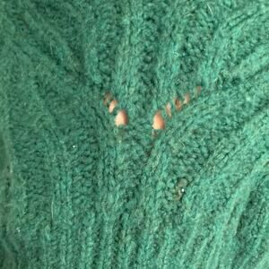 Mia Mai Green Open Knit Cable Knit Chunky Sweater Size Small Fall Academia