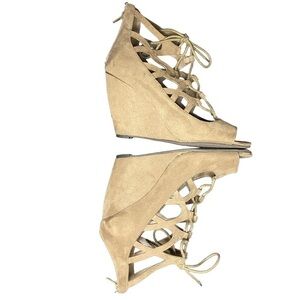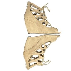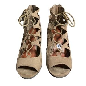 Mia Maris Wedge Gladiator Strappy Tie Sandal Tan Size 9