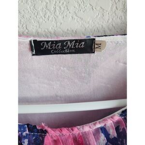 Mia Mia Collection Womens Sz M Maxi Dress Micro Pleat Pink Blue Floral