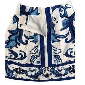 Mia Milani Linen-Blend Zanya Skirt in Sapphire Aqua Floral Motif Size Small
