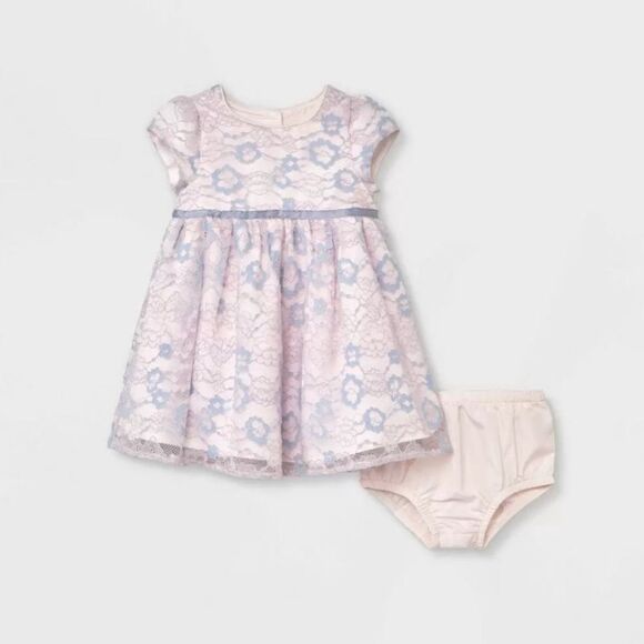 Mia & Mimi Infant Baby Adorable Pink and Blue Lace Dress with Bloomers NEW!