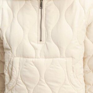 This Mia Quilted Half-Zip High Neck Pullover boasts a quilted texture with a front zip, merging style with comfort. This silhouette ensures a relaxed fit, ideal for layering over any top for chilly outings. Its structured design offers an everyday staple, perfect for a casual look or a cozy evening stroll.