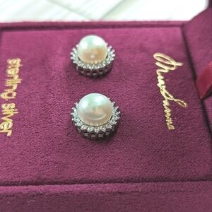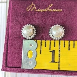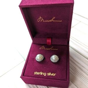 Mia Sarine Freshwater Pearl Cubic Zirconia Sterling Silver Stud Earrings NWT